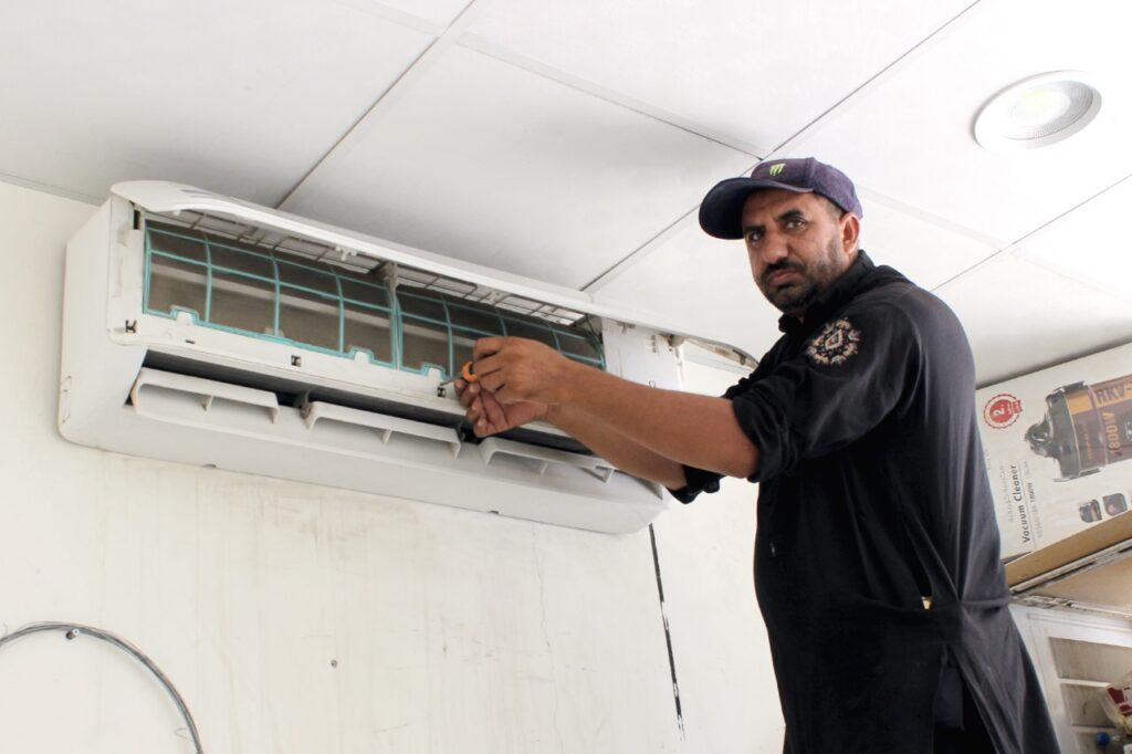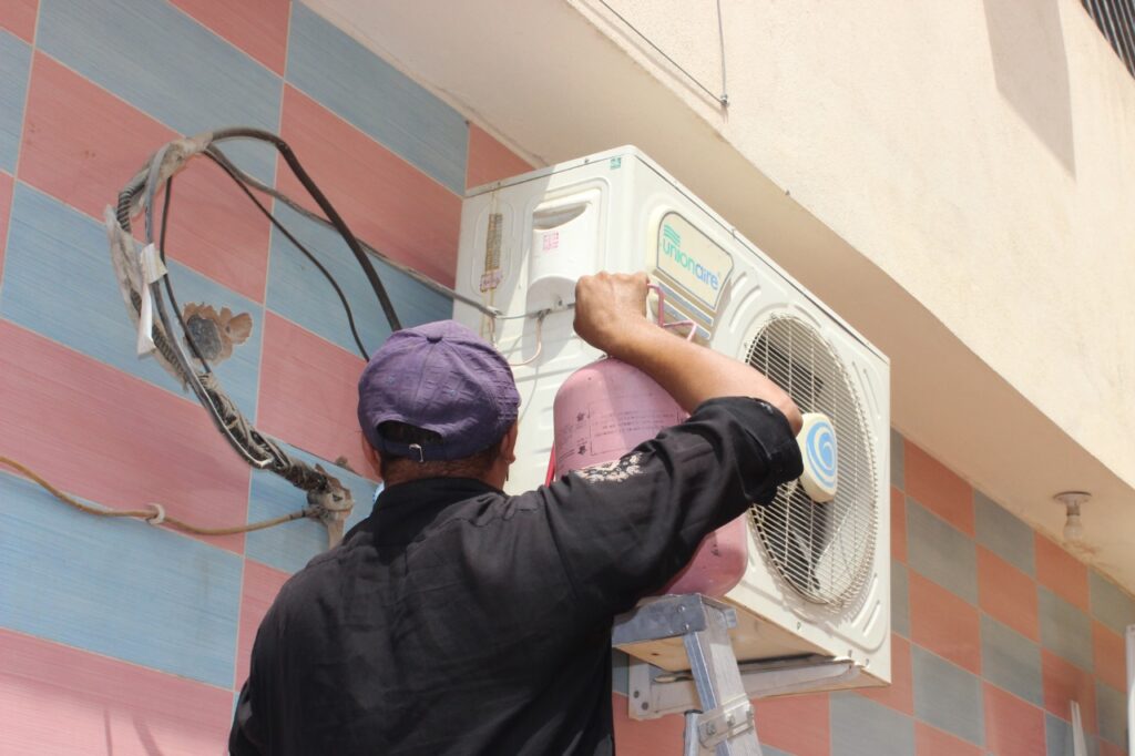 تصليح مكيفات الهواء – إصلاح مشاكل التبريد، وتسربات المياه، والأصوات الغريبة، والأعطال الكهربائية.